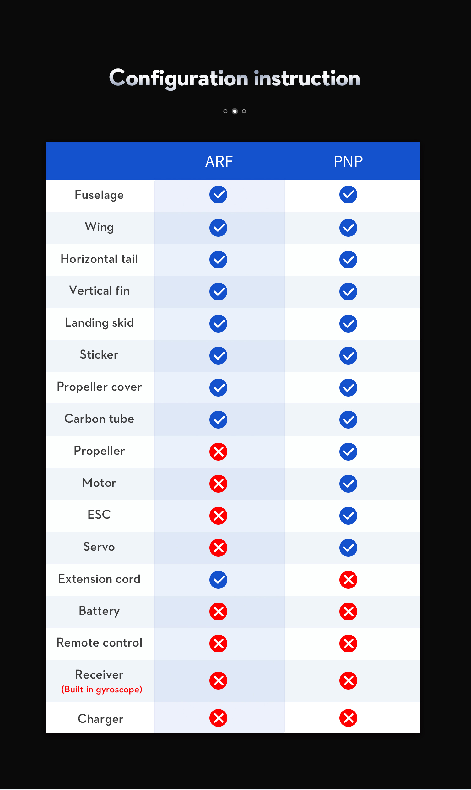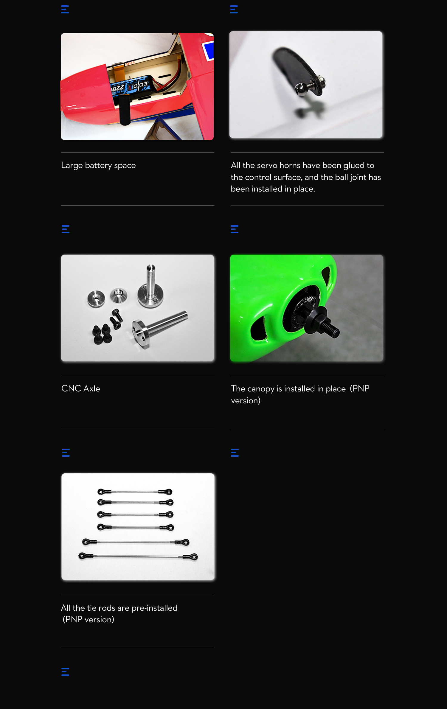 - Power: Gas (35CC/50~55CC/60~70CC) or electric (SUNNYSKY)